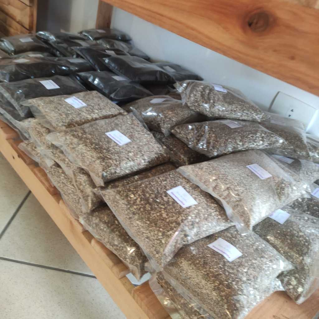 O kit é composto por: PERLITA – auxilia na oxigenação das raízes, controle da irrigação e equilíbrio de água e nutrientes. ( 2 Litros) FIBRA DE COCO – atua na retenção de umidade, evitando estresse hídrico da planta.(1 litro) VERMICULITA – proteção térmica, essencial para germinação. (1litro) TURFA DE SPHAGNUM – a melhor turfa, PINDSTRUP, importada da Dinamarca, aumenta a capacidade produtiva do solo ao longo do tempo. Rica em matéria orgânica. (1 litro)